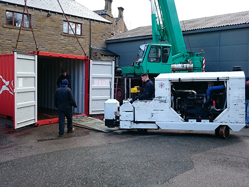 In January, the firm cleared the car park at their Head Office in Huddersfield to allow a crane to come in and help CoGri Group load the trucks that were taking a patented Laser Grinder® and a Laser Screed machine to their overseas operations.